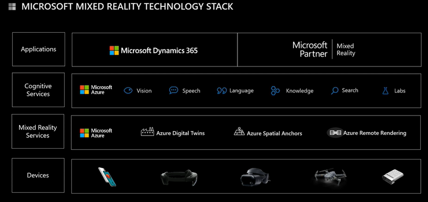 Applications – Cognitive Services (AI) – Mixed Reality Services – Devices