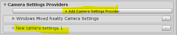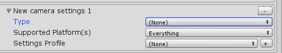 5. Once you clone it, press the “Ass camera settings provider” which will add a New camera settings, press the small (-) and click Type.