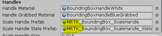 - *The Scale Handle prefab are available if you install Unity.HoloLens2.GettingStarted.Tutorials.Asset.2.1.0.0 . Set the Scale Handle Prefab and Slate to the following.