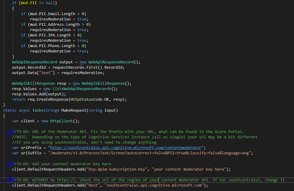 2. Open Moderation.cs to undestand the code we are about to edit. And edit the To-Do areas I pointed with a blue arrow.